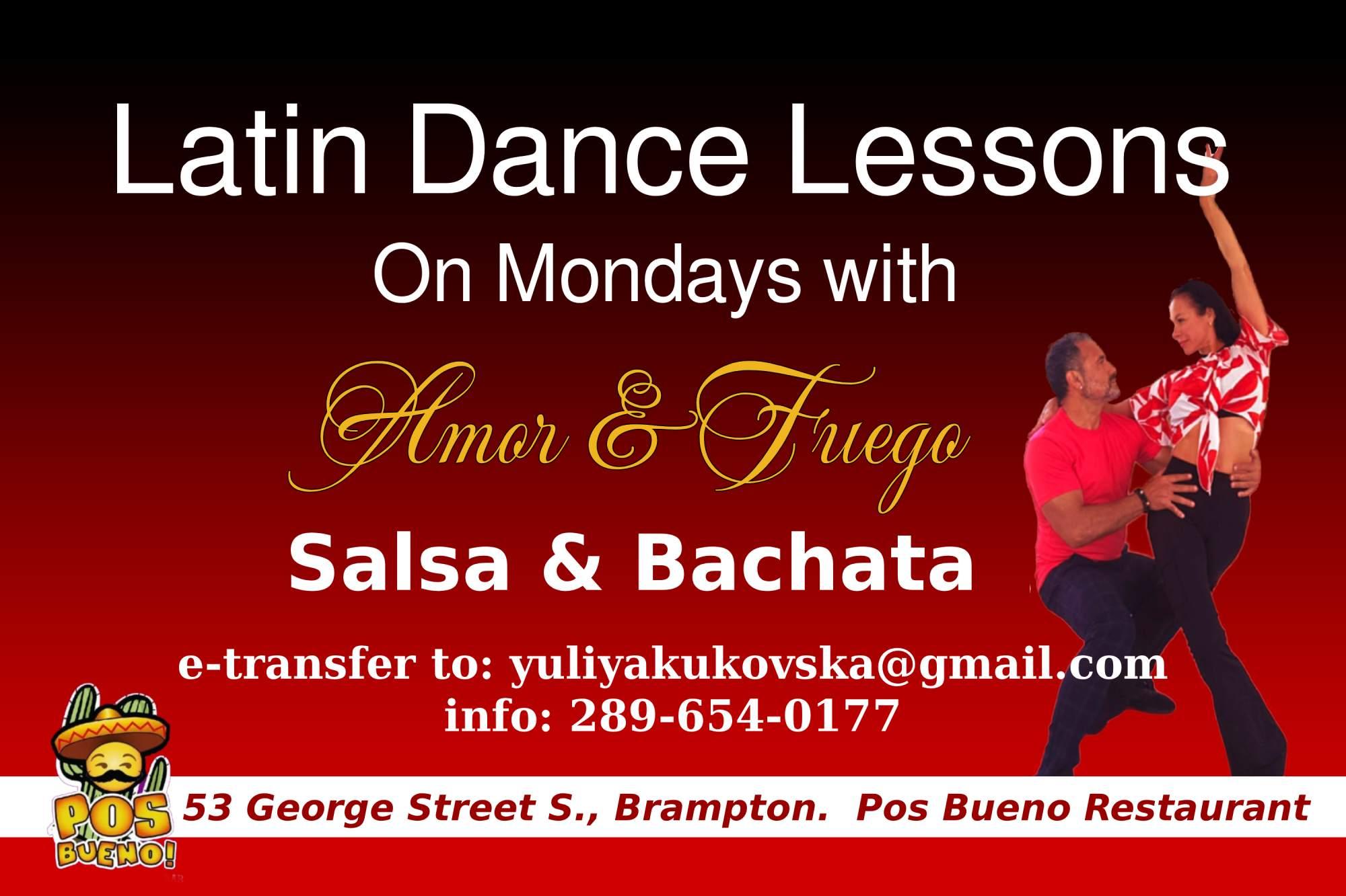Learn Salsa/Bachata in Downtown Brampton! Every Monday. Bachata (5–6 pm) Salsa Fundamentals (6–7 pm) and Salsa (7-8pm). No partner reqd.