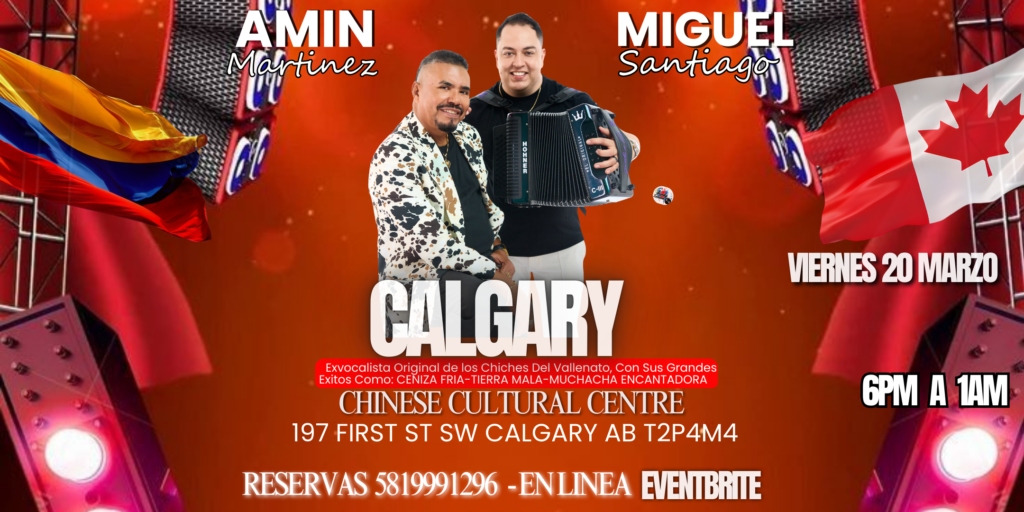 Hola amigos de Calgary, ven a disfrutar y a revivir los mejores clasicos del Vallenato, por primera vez en Calgary Amin Martinez.