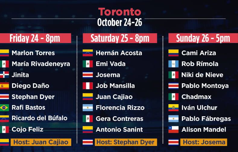 Serán 5 noches inolvidables con 37 comediantes de 17 países, haciendo reír a lo grande a la comunidad hispano-canadiense.