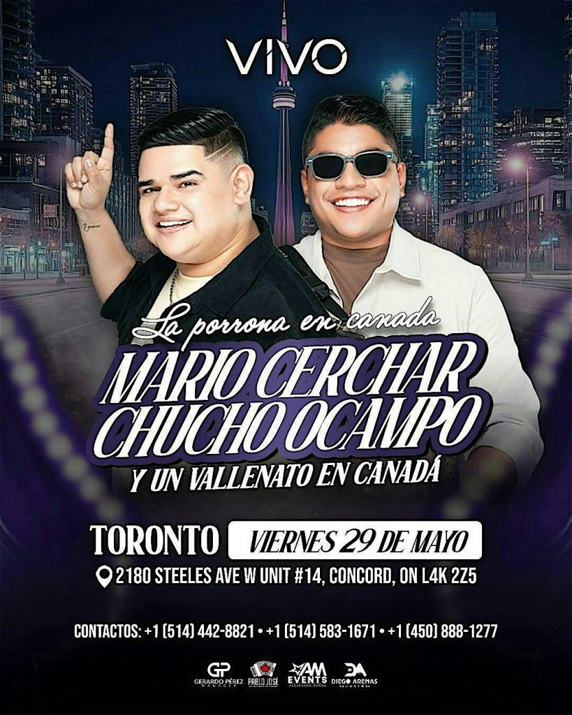Este VIERNES 29 DE MAYO, Toronto vibrara al ritmo del acordeon, el canto y la fiesta como solo el vallenato sabe hacerlo. Una noche para cantar a todo pulmon, brindar, bailar y sentir Colombia mas cerca que nunca
