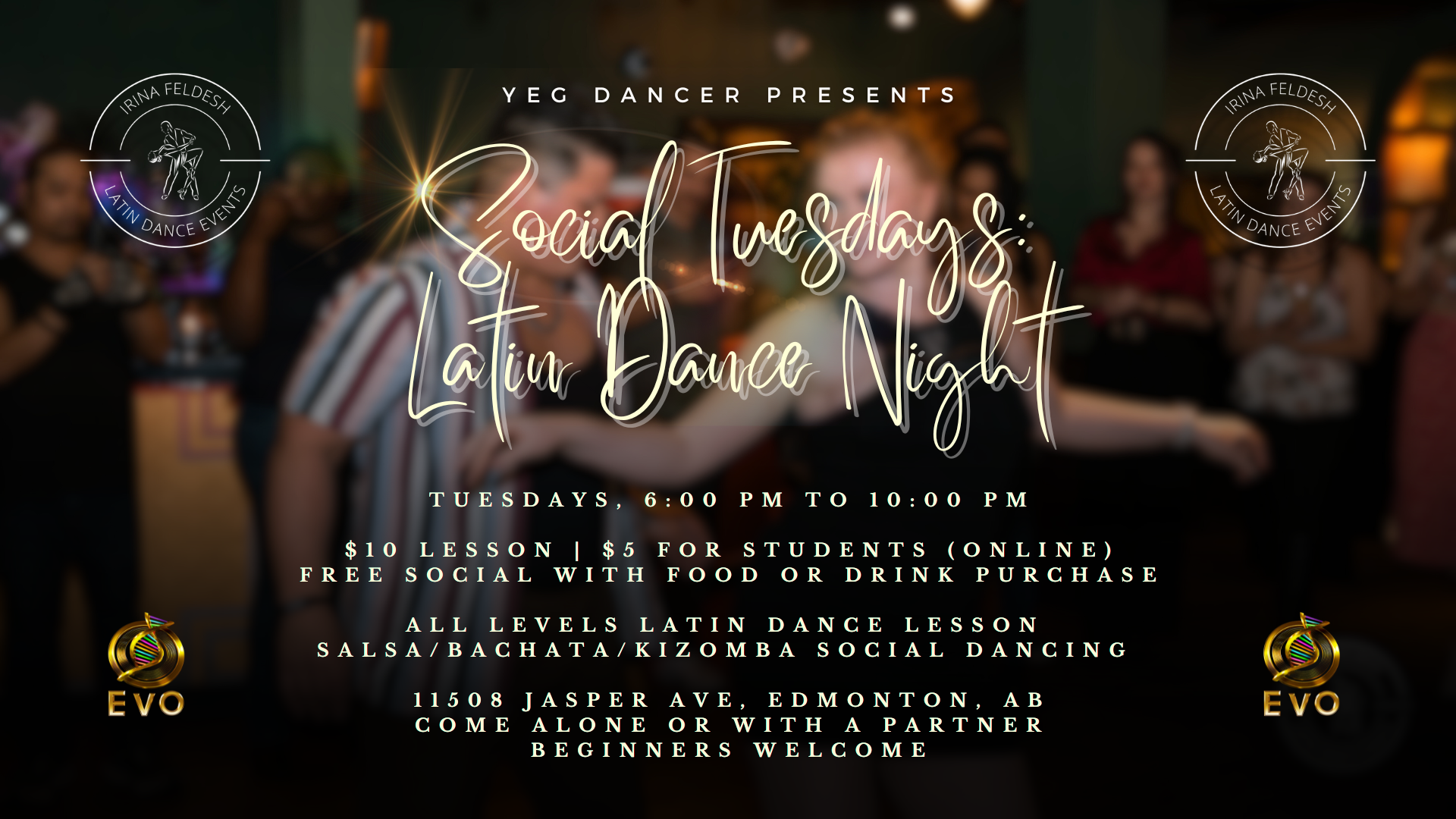 Every Tuesday, come chill, socialize, learn new dance moves, and dance with us in downtown Edmonton! 🙂
