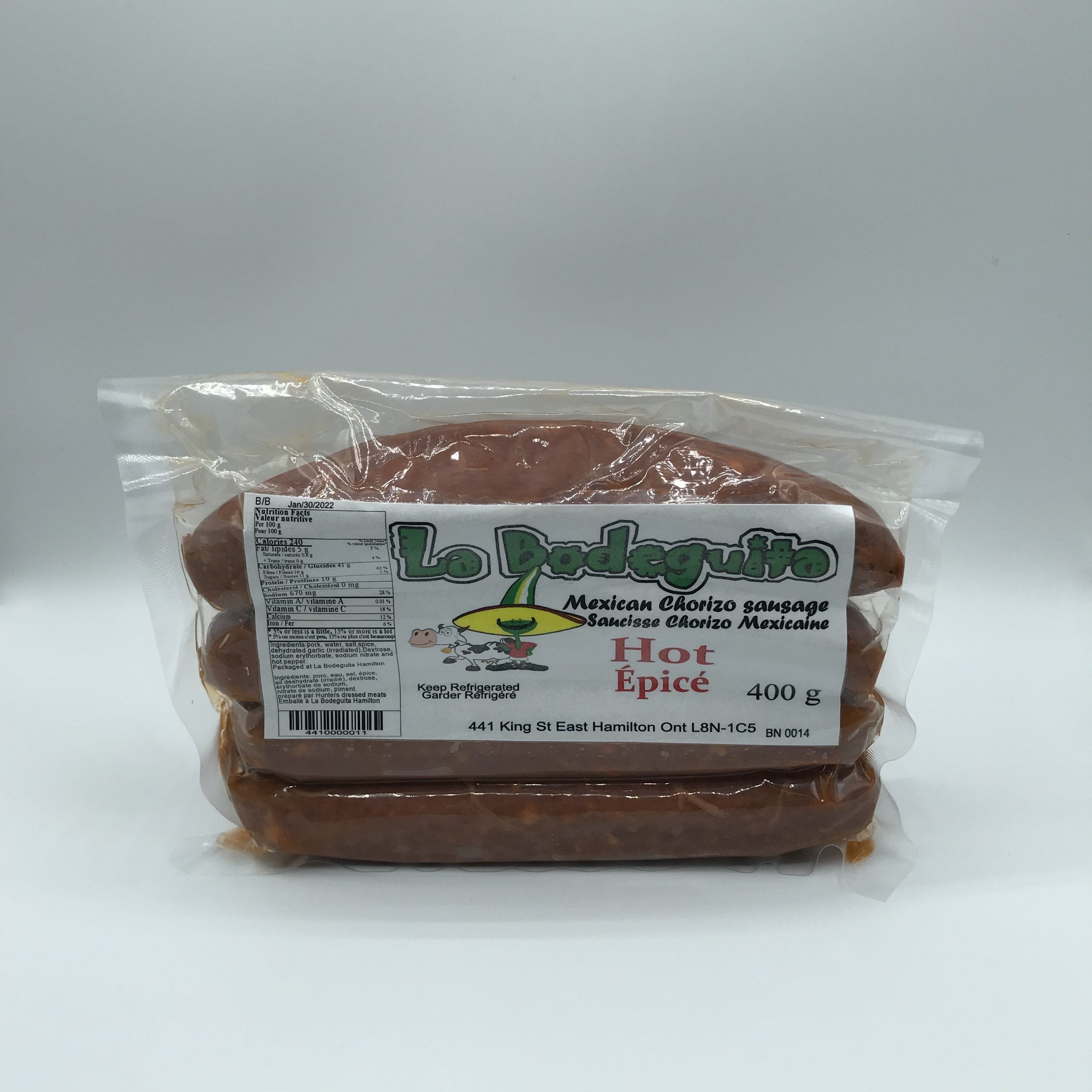 La Bodeguita Mexican chorizo hot 400 gr. Category: Food & Grocery. Package size: 400 gr.