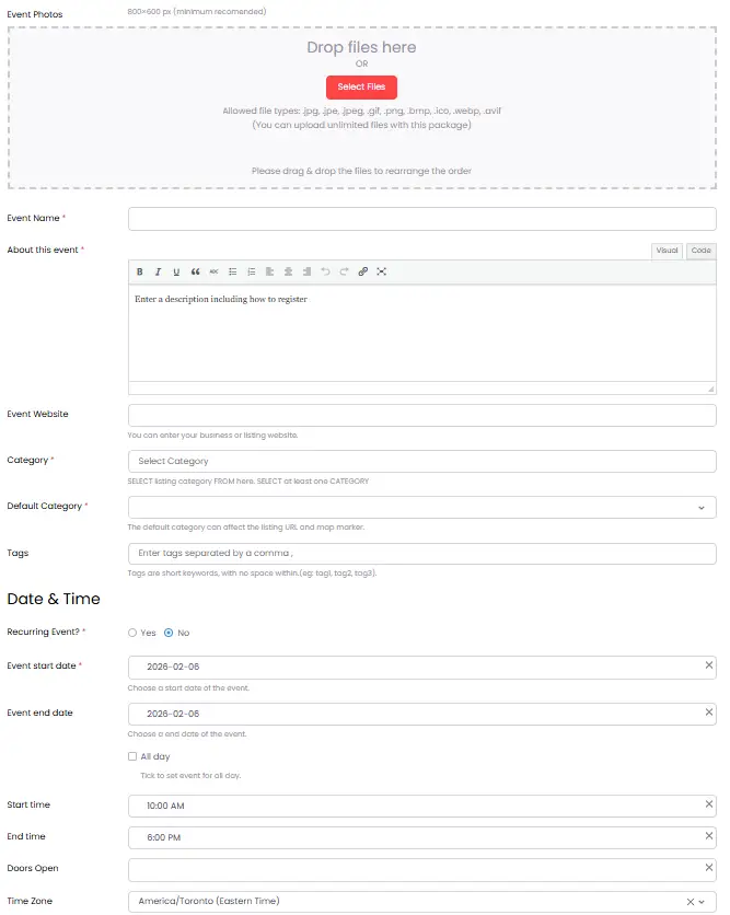 - Event name, category, and description