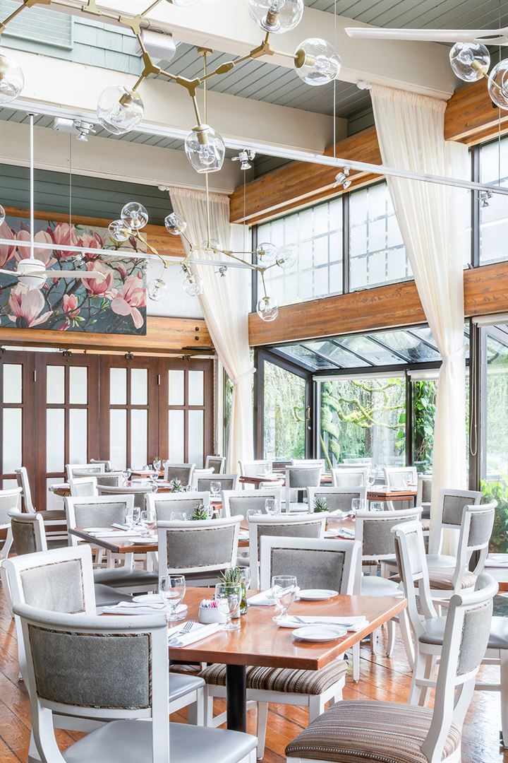 Set in Vandusen Garden, our restaurant provides a retreat like no other – casual elegance, soothing ambiance, and picturesque garden vistas. Join us for lunch, brunch, happy hour, and dinner or contact us to start planning your next dream event or wedding.nOur heated covered patio overlooks the tranquillity and beauty of the VanDusen Botanical Garden – a glorious 55-acre backdrop for your ceremony, photography, reception, and party. nOur slate and wood floor reflects old-world charm and warmth. The beauty of the room, which can hold 200+ standing guests and 175 seated, is enhanced by floor-to-ceiling pure drape swaths. Skylights, white gravels on the walls, and potted plants give the feeling of the lush Botanical Garden indoors.nShaughnessy is seasonal, innovative, and contemporary West coast inspired comfort food. We offer special menus for weddings, and the culinary team is happy to customize the menu to suit unique needs and requirements.